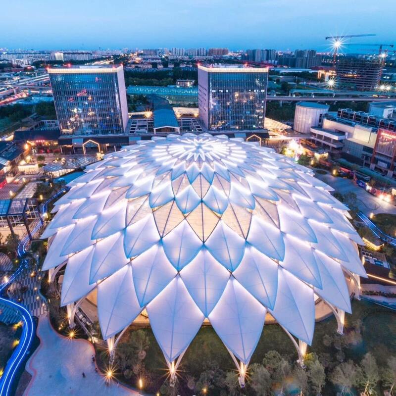 Tensile membrane structures consist of high-performance membrane, steel cables, and supports, stabilized by pre-tension. Ideal for large-span construction, they are practical, innovative, and aesthetic. With easy construction, fast installation, light weight, high strength, safety, and durability, they are a highly expressive modern architectural form.